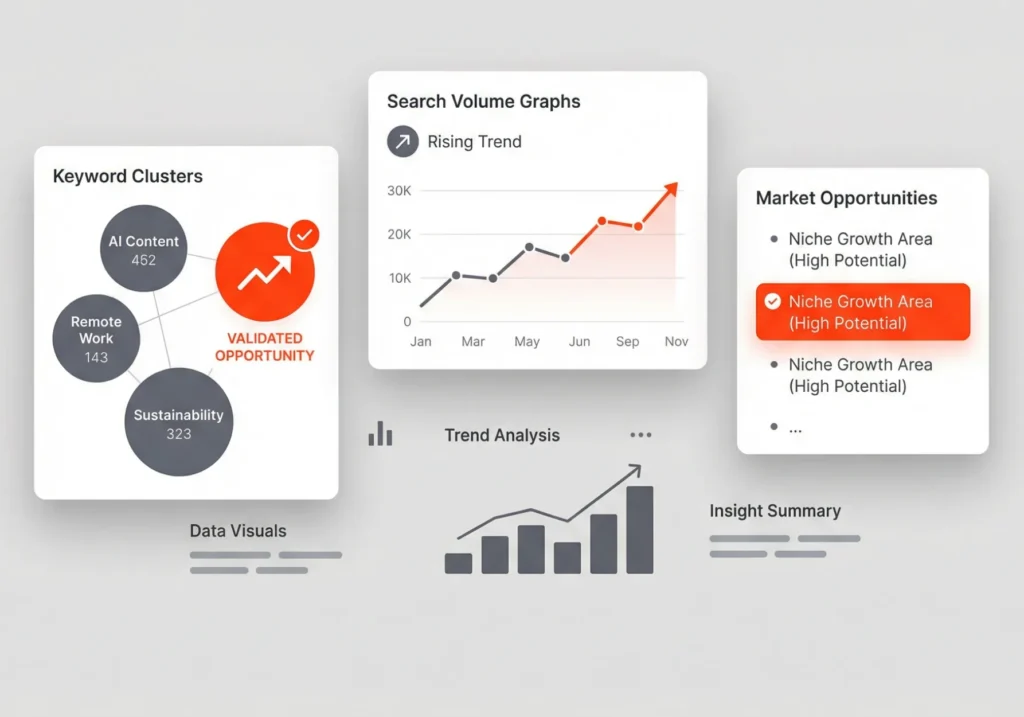 Meningkatkan presisi strategi melalui insight keyword, tren industri, dan peluang pasar yang tervalidasi.
